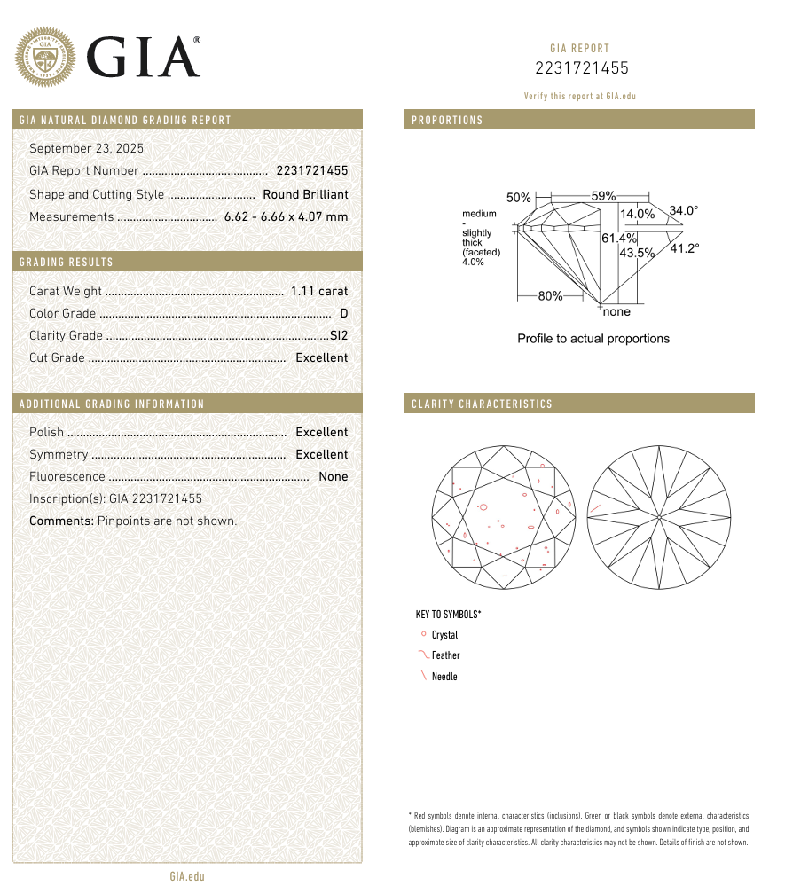 L008 D SI2 1.11CTS Shape : Round Carat Weight : 1.11cts Color : D Clarity : SI2 Cut : Excellent Polish : Excellent Symmetry : Excellent Fluorescence : NONE GIA Report Number#2231721455 SHOP - - - - - - - - - - - - - - - - - - - - - - - - - - - - - 歡迎到門市鑑賞選購🔍 過百款式戒指托可供選擇💍 💎預約到門市 / 進一步了解可以whatsapp https://api.whatsapp.com/send?phone=85267162508